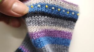 Dvojitý rantl s korálky, pletené od rantlu ke špičce.