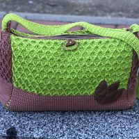 Háčkovaná kabelka na zip s uchem přes rameno.