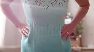 "Šaty nebo spíše tunika je pletená shora dolů - od průkrčníku k dolnímu okraji. Návod jsem si upravila tak, že jsem pod rukávem ubírala jen 2x. Na předním díle jsem pletla 8 cm pružným vzorem - 4 hl, 1 obr. V první řadě pod pružným vzorem jsem rozpletla každé oko obrace ( kromě prostředního 11 oka obr.) na 2 oka hladce, celkem 20 x, tím jsem přidala 20 ok a dále už jsem až do konce nepřidávala. (234 ok celkem) Vzor A3 jsem opakovala 13 x."