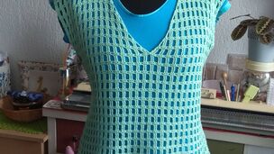 "Top je uháčkovaný ze dvou dílů - přední a zadní. Díly jsou k sobě sháčkovaný pevným okem."