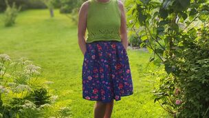 "Top s ažurovým vzorem je pletený od spodu nahoru. Náramenice jsou sešité pletařským stehem."