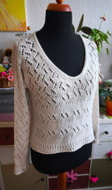 Vybrala jsem vzor a pak už jsem jen pletla z hlavy 😊 Kulatý hluboký výstřih je olemován dutinkou.