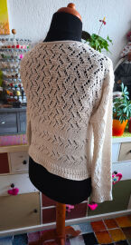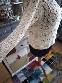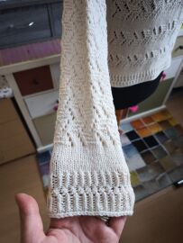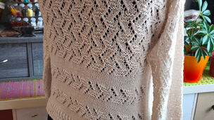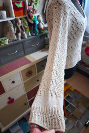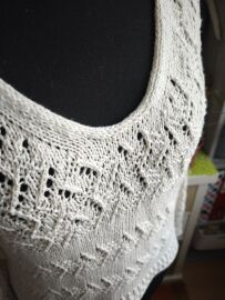 "Vybrala jsem vzor a pak už jsem jen pletla z hlavy 😊 Kulatý hluboký výstřih je olemován dutinkou."
