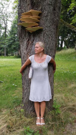 "Šaty s kruhovým sedlem a ažurovým vzorem pletené shora dolů - od průkrčníku k dolnímu okraji."