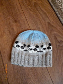 "Čepička pro dcerku, která šla bohužel hned do světa, neboť byla záhy malá. Jeden z prvních vyplétacích pokusů."